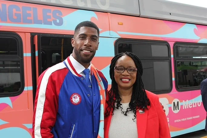 Jamal Hill, “The Duke of LA,” pictured with Metro CEO Stephanie Wiggins as part of Up Hill Concierge’s partnership with Metro Los Angeles to provide safe, seamless public transit for global guests.